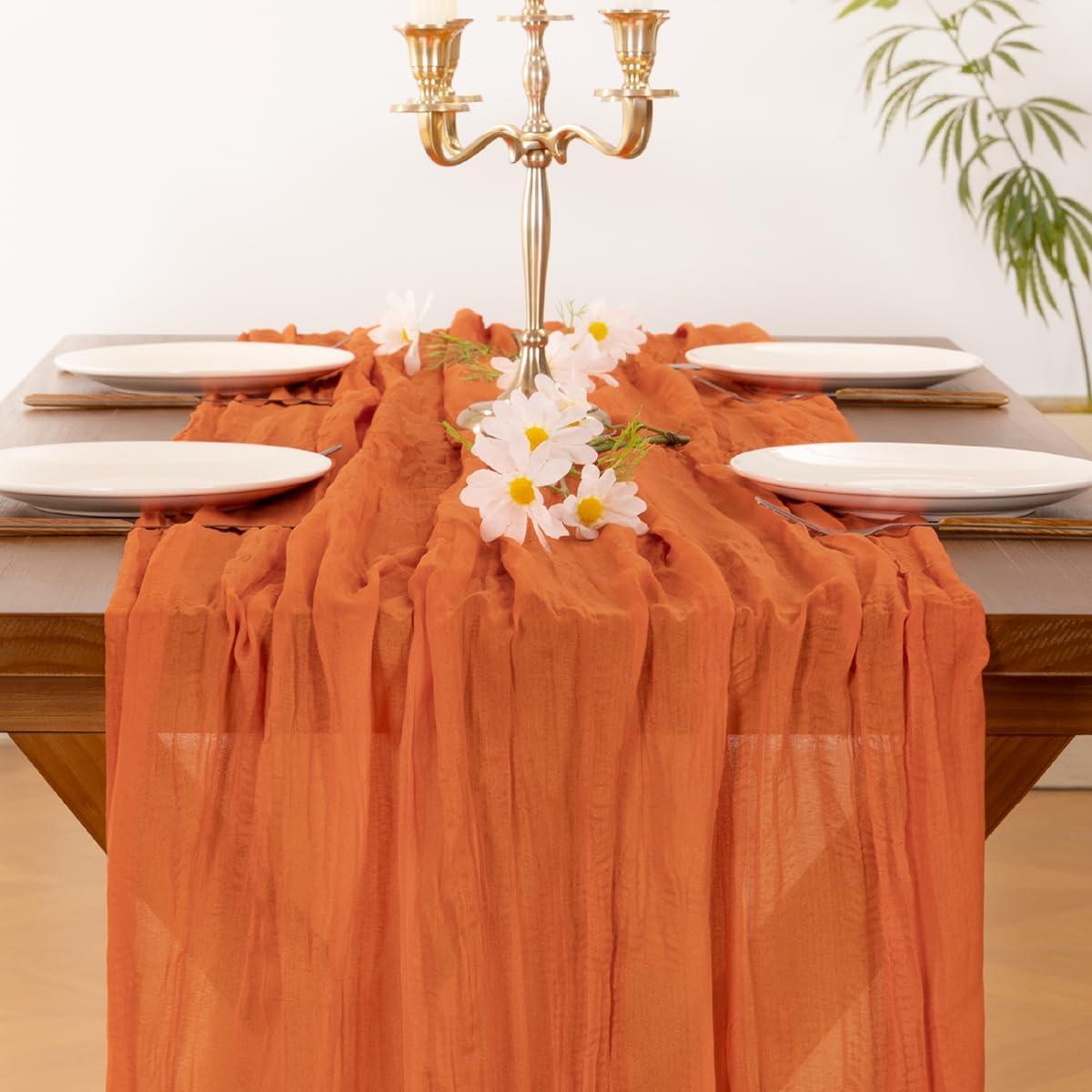 Socomi Beige Cheesecloth Table Runner Easter Spring Boho Rustic Gauze 120 inch 10FT Cheese Cloth Runner for Wedding Party Baby Shower Birthday Home Decor Holiday Decorations(Orange)