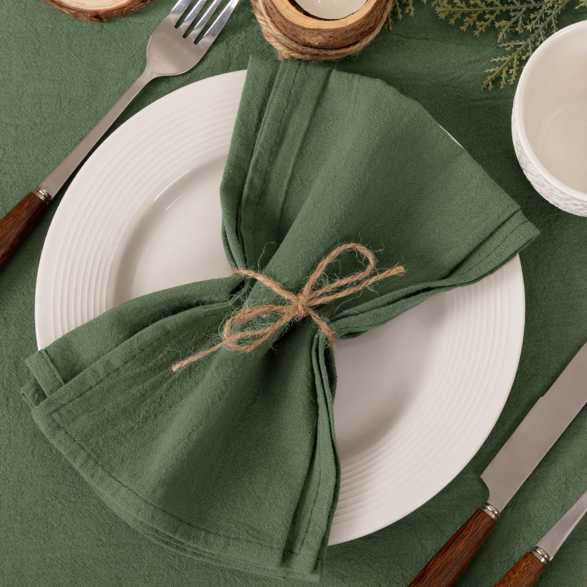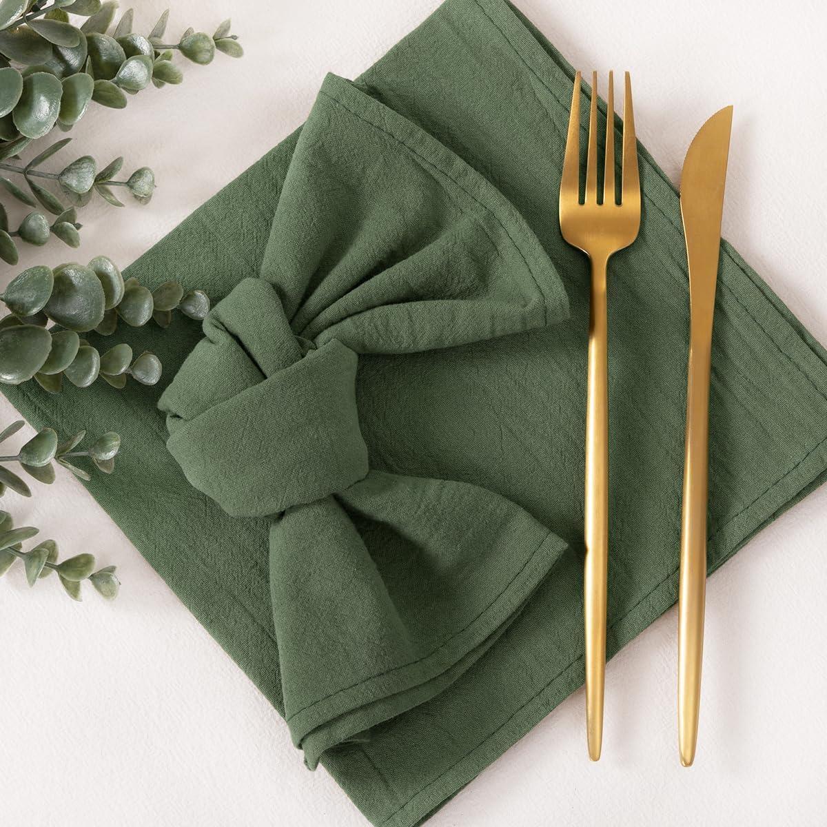 Socomi Cloth Napkins Green Fall Thanksgiving Washable Reusable Bulk Linen Cotton Napkins Set of 4 17″x17″ for Wedding Party Bridal Baby Shower Birthday Dining Table Decorations(Olive Green)