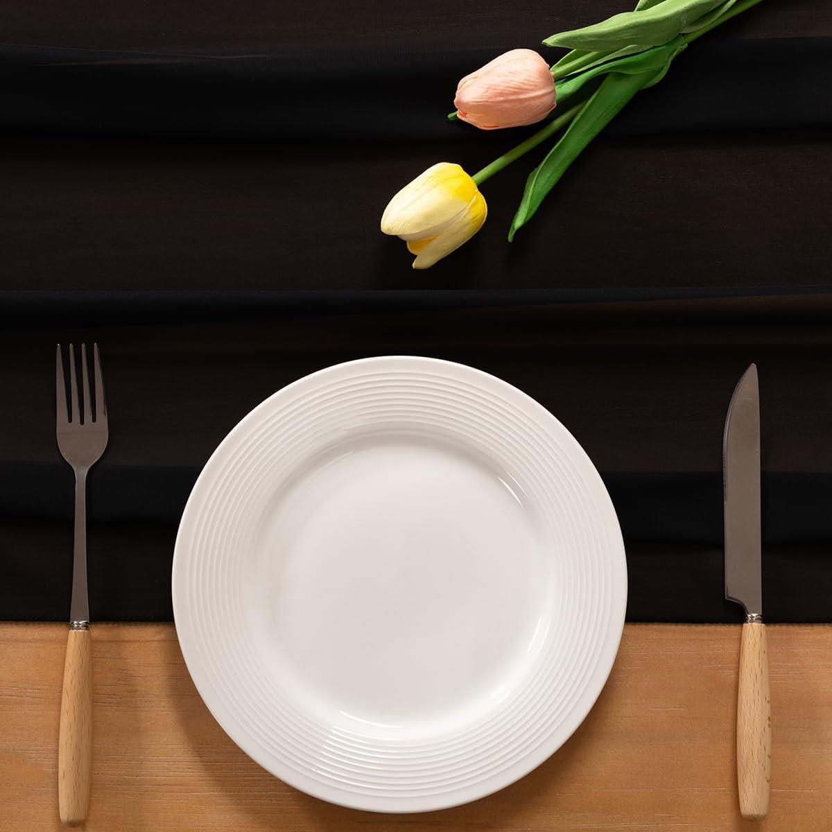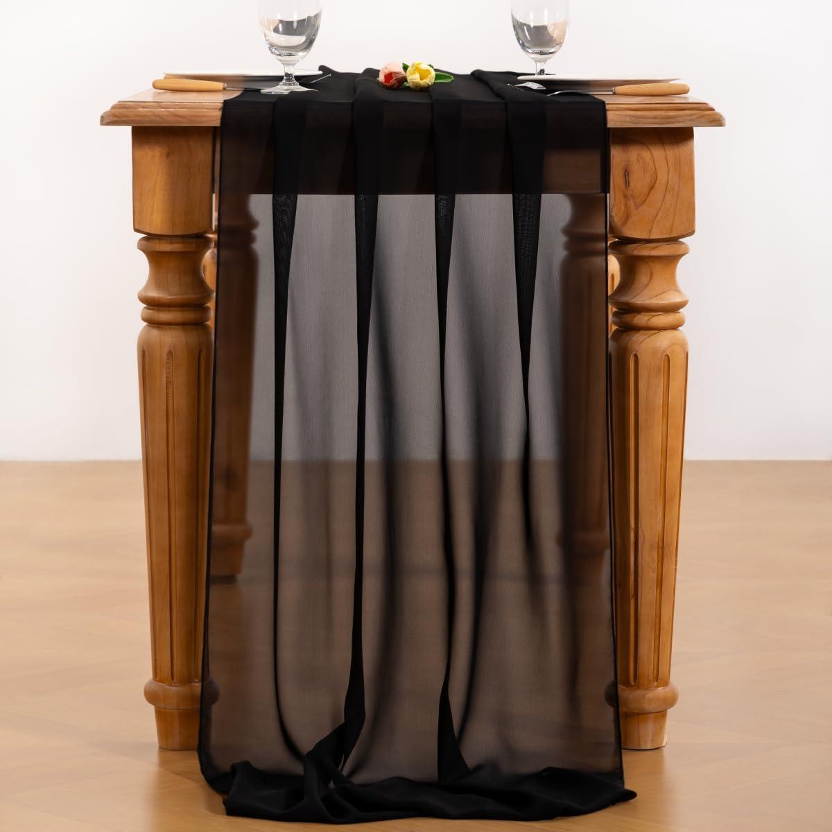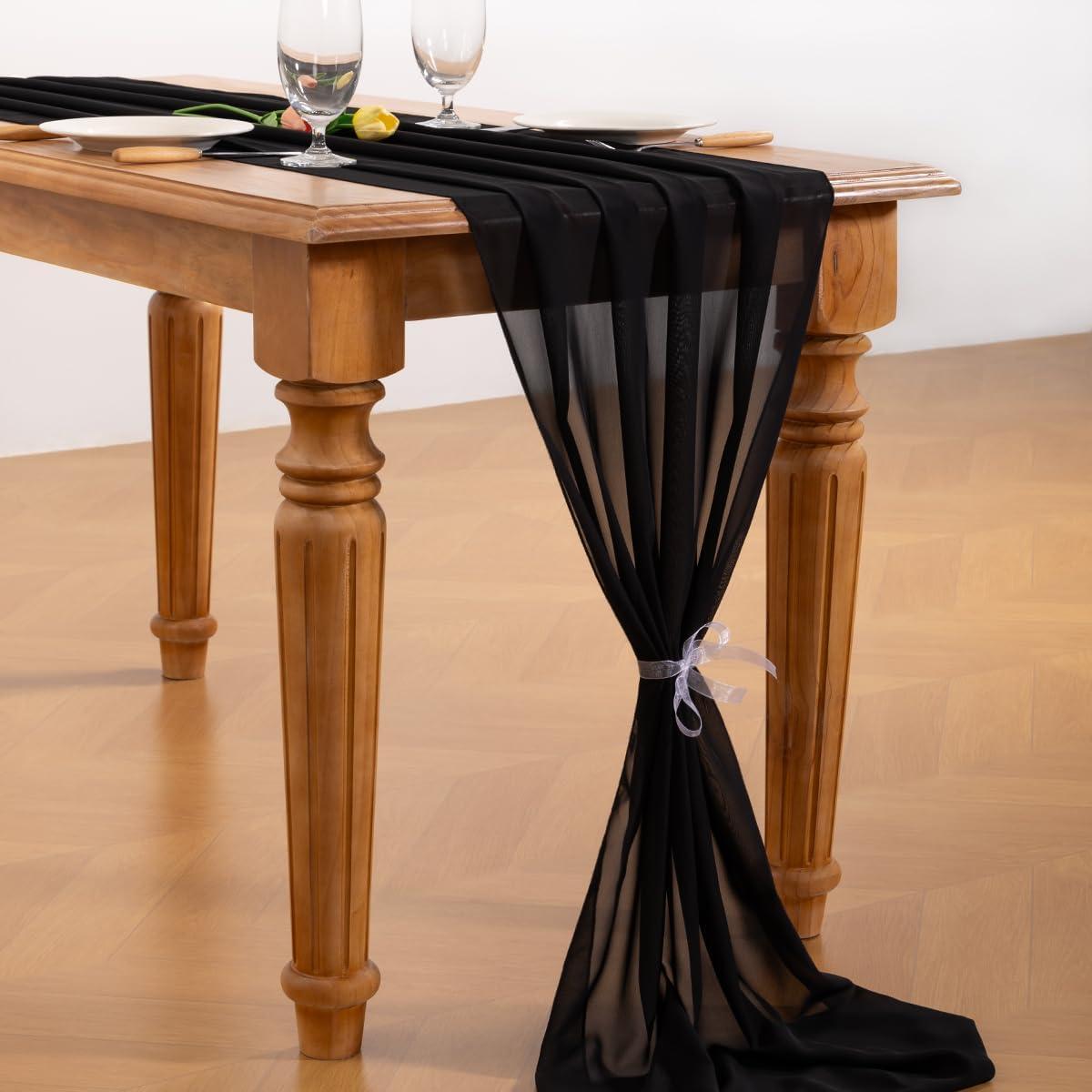 imageSocomi Emerald Green Chiffon Table Runner Fall Thanksgiving Boho Rustic 14ft 29x170 Inches Wedding Runner Sheer Romantic Bridal Shower DecorationsBlack