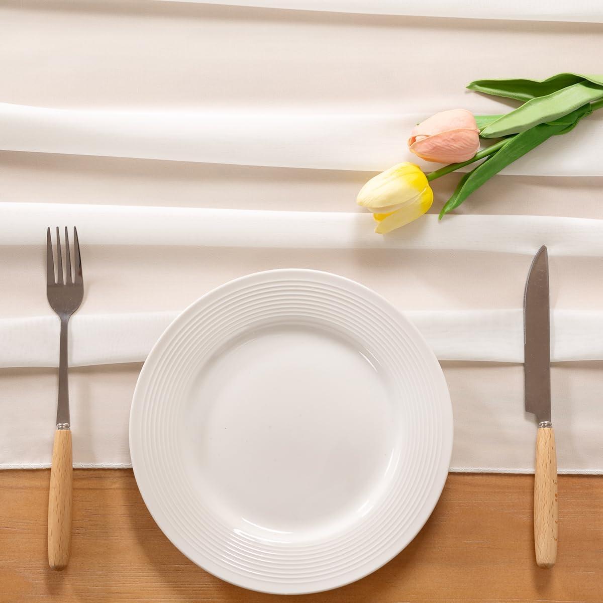 imageSocomi Emerald Green Chiffon Table Runner Fall Thanksgiving Boho Rustic 14ft 29x170 Inches Wedding Runner Sheer Romantic Bridal Shower DecorationsIvory