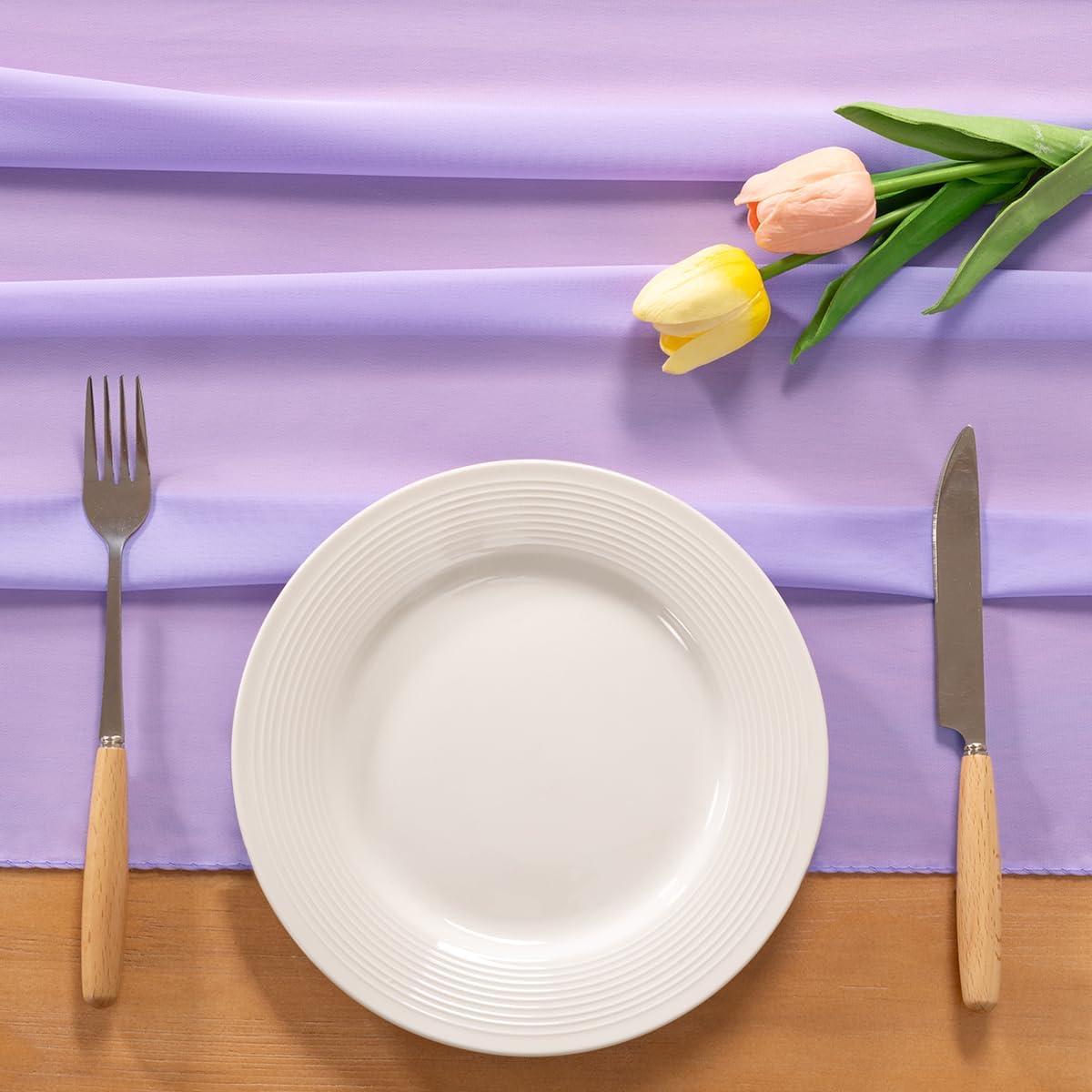 Socomi Emerald Green Chiffon Table Runner Fall Thanksgiving Boho Rustic 14ft 29x170 Inches Wedding Runner Sheer Romantic Bridal Shower Decorations(Lilac)