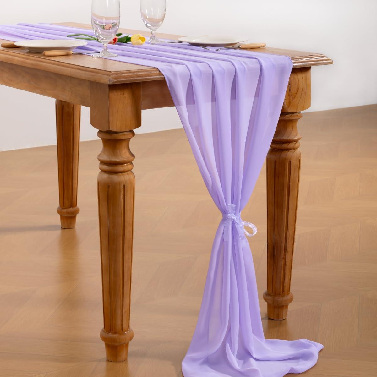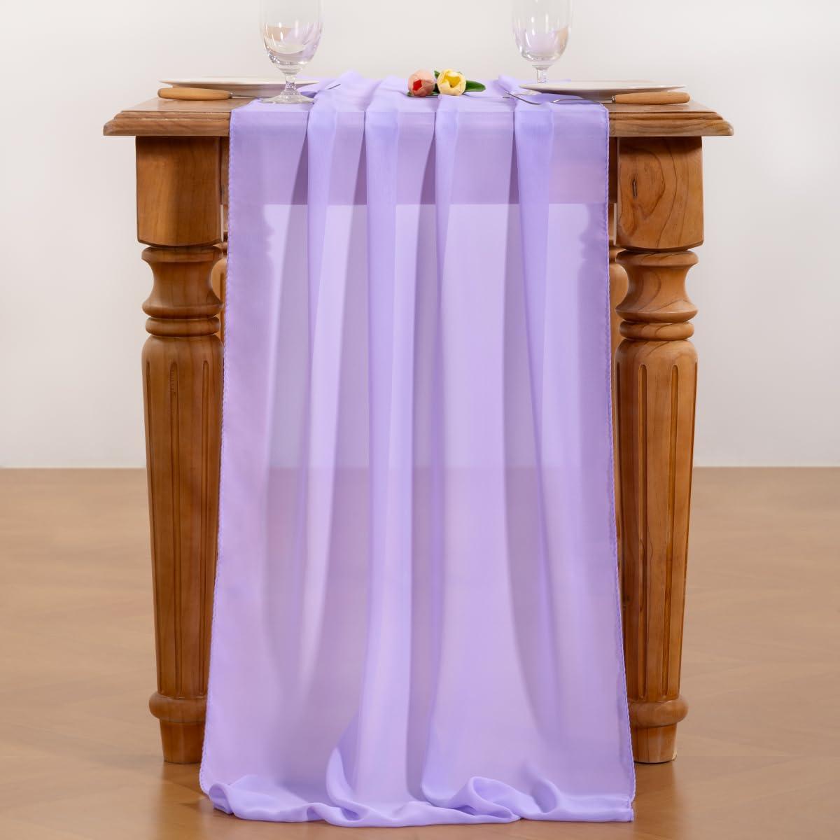 imageSocomi Emerald Green Chiffon Table Runner Fall Thanksgiving Boho Rustic 14ft 29x170 Inches Wedding Runner Sheer Romantic Bridal Shower DecorationsLilac
