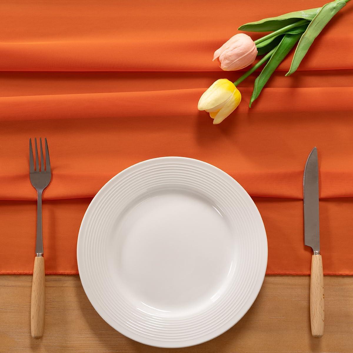Socomi Emerald Green Chiffon Table Runner Fall Thanksgiving Boho Rustic 14ft 29x170 Inches Wedding Runner Sheer Romantic Bridal Shower Decorations(Orange)