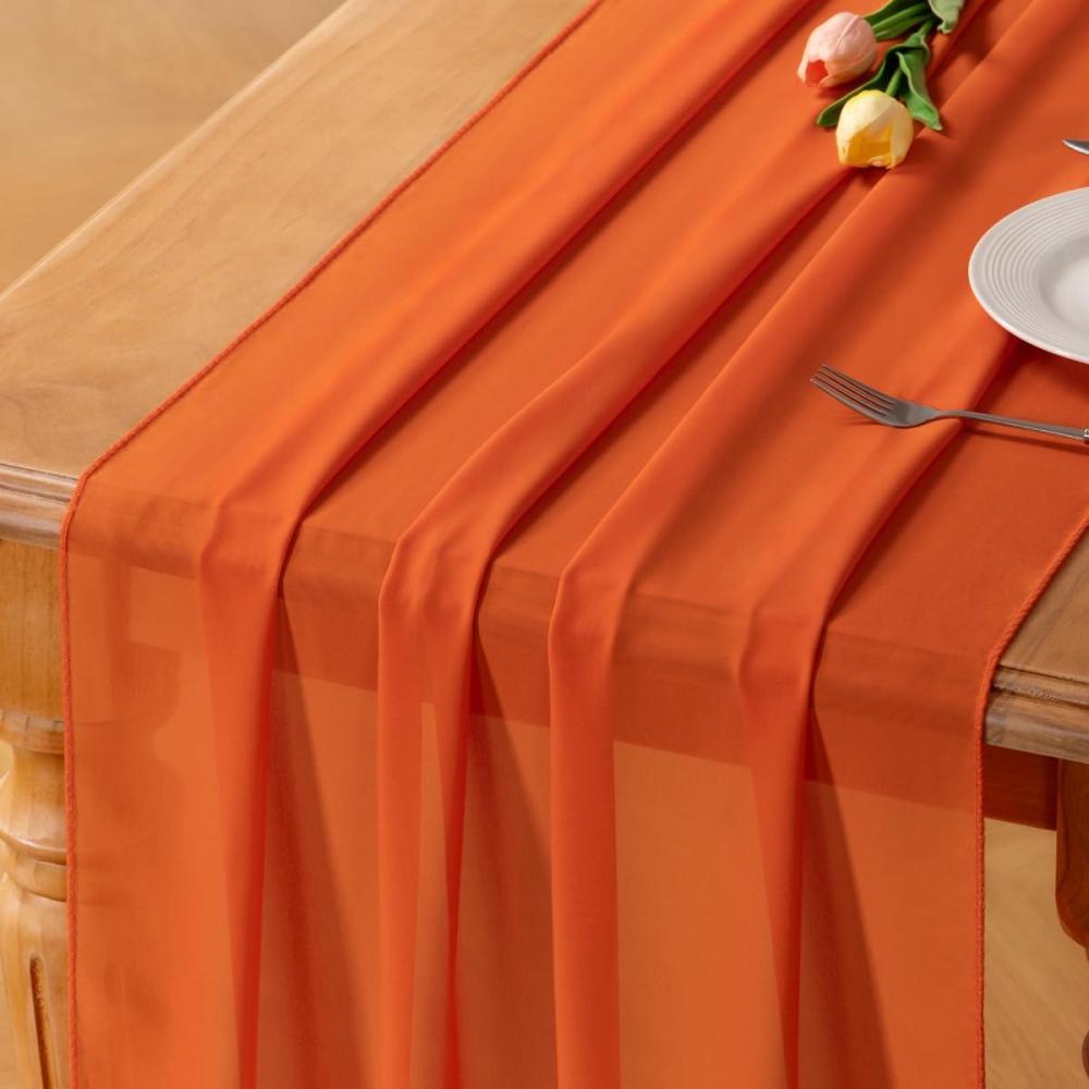 Socomi Emerald Green Chiffon Table Runner Fall Thanksgiving Boho Rustic 14ft 29×170 Inches Wedding Runner Sheer Romantic Bridal Shower Decorations(Orange)