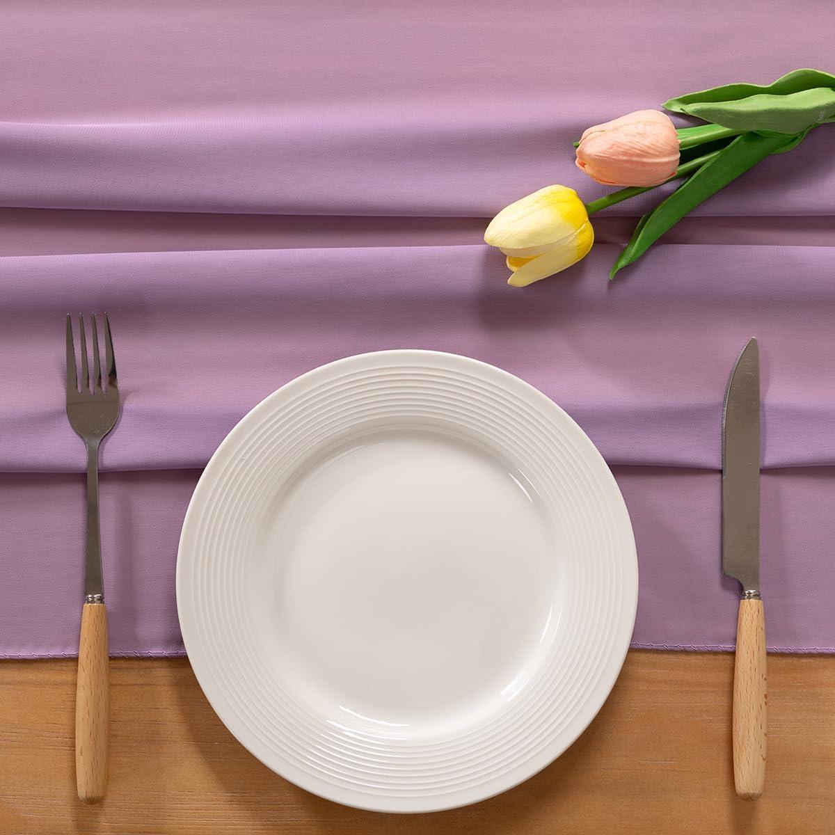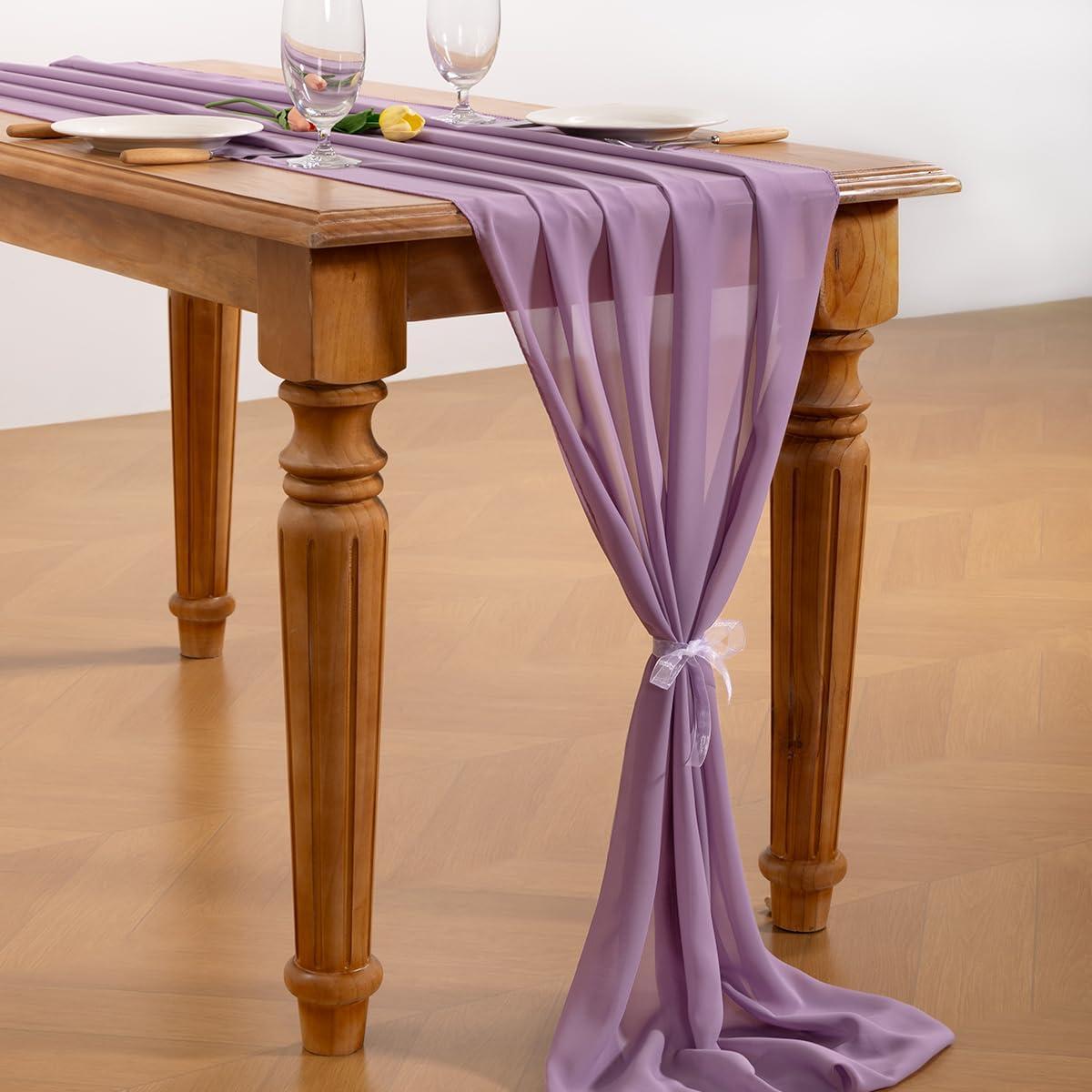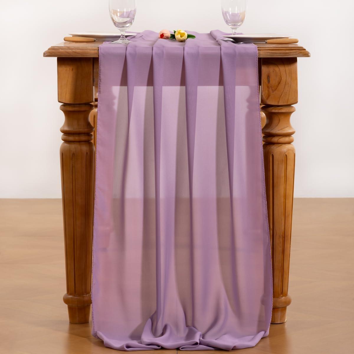 Socomi Emerald Green Chiffon Table Runner Fall Thanksgiving Boho Rustic 14ft 29x170 Inches Wedding Runner Sheer Romantic Bridal Shower Decorations(Purple)