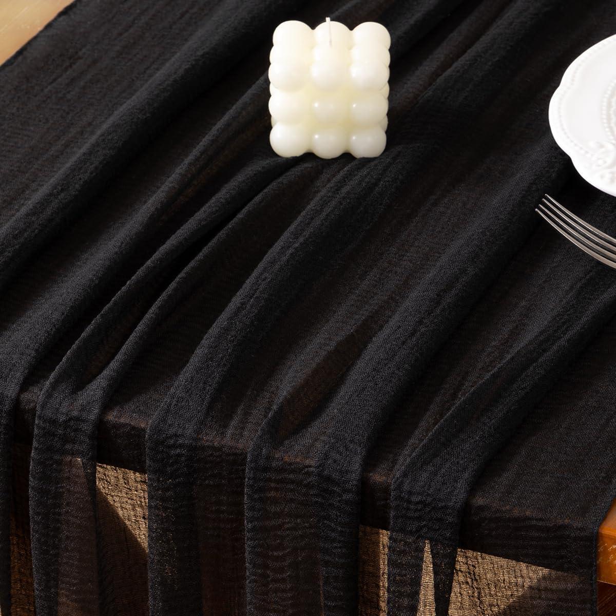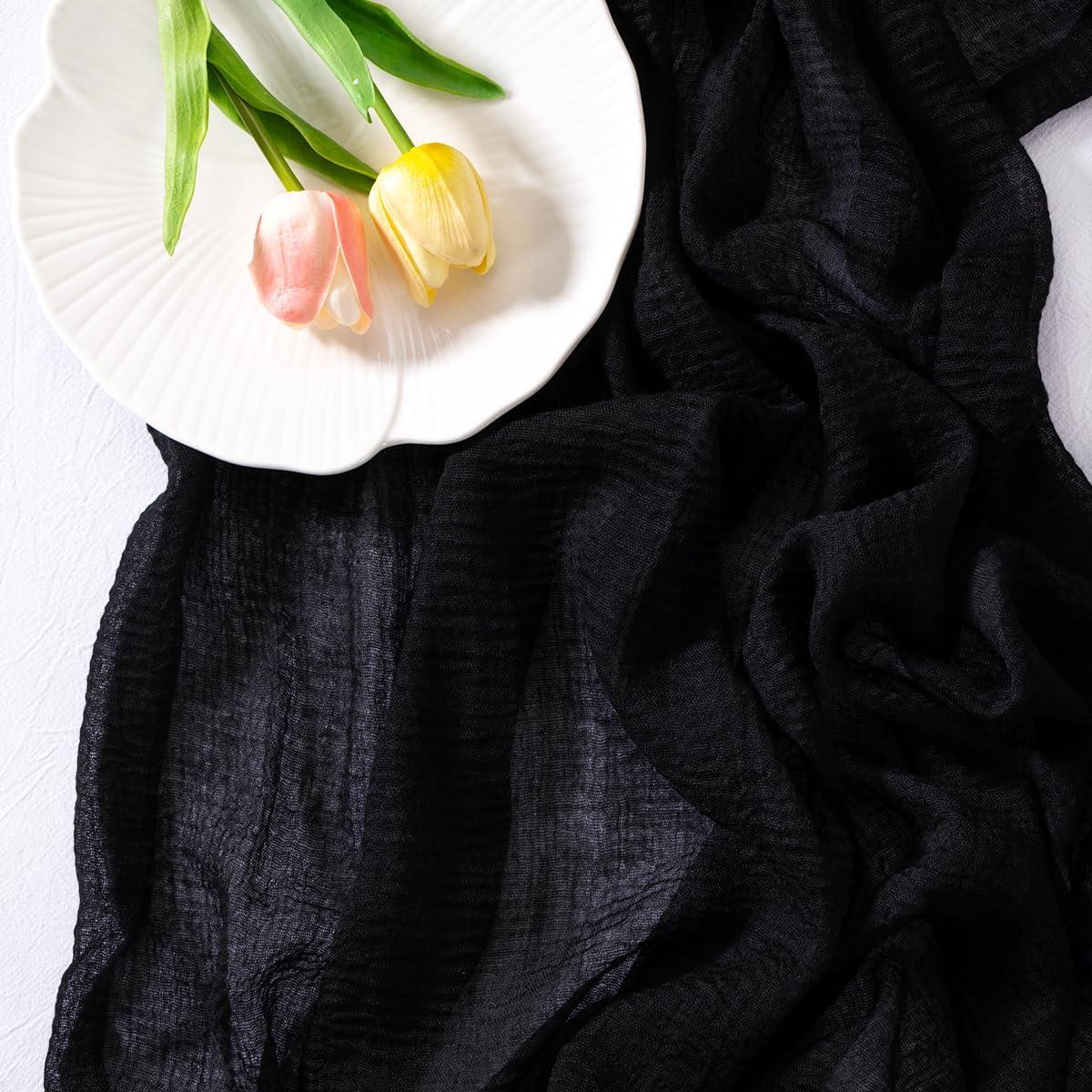 Socomi Fall Thanksgiving Table Runner Diamond Cheesecloth Gauze 120 Inch Rustic Boho Cheese Cloth Runner for Wedding Party Baby Bridal Shower Decoration Holiday Home Decorations(Black)