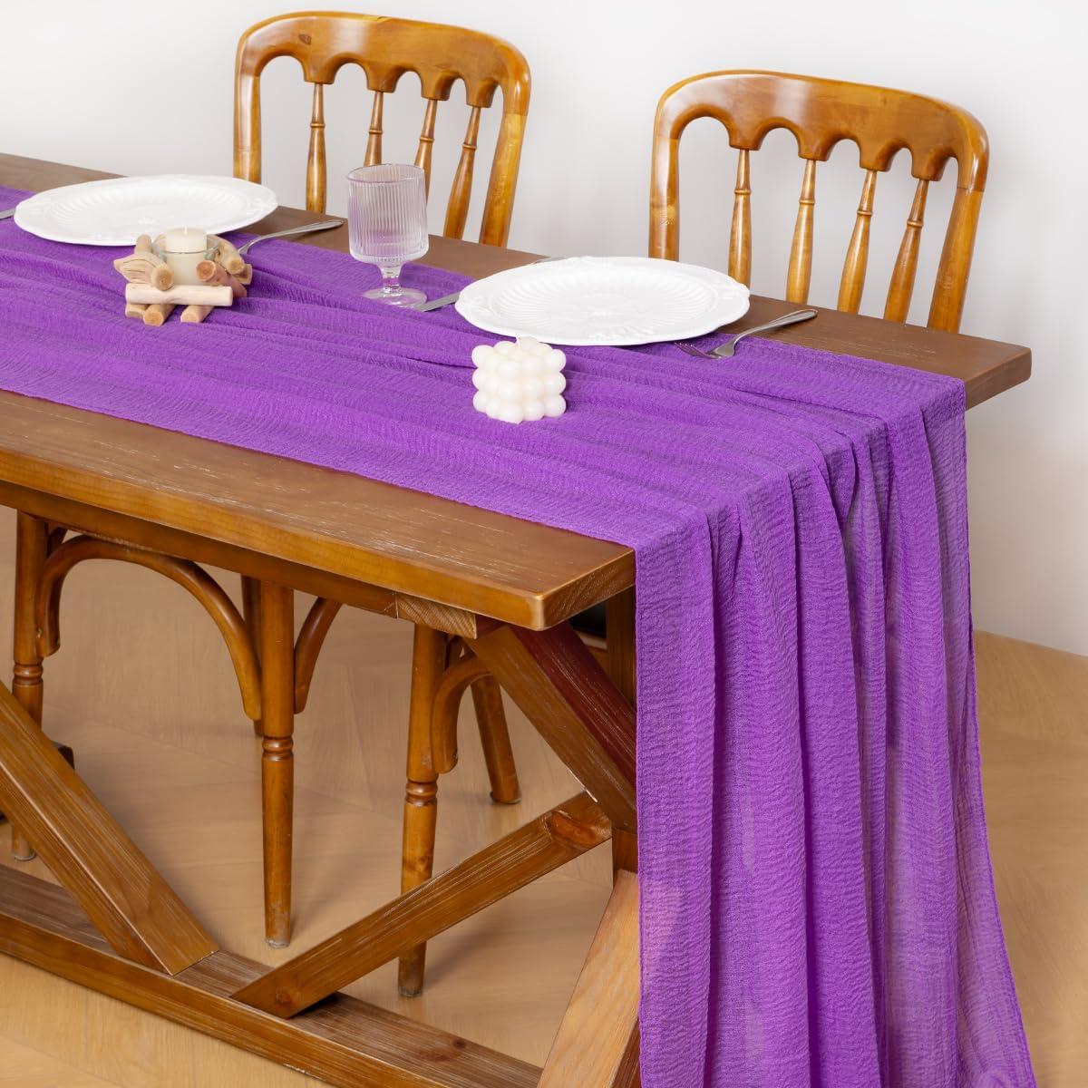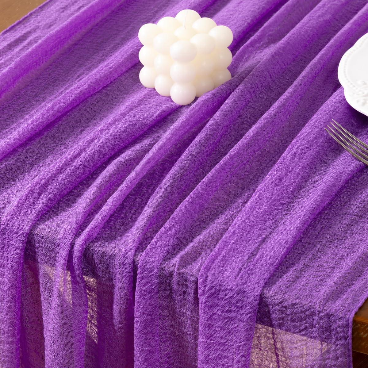 Socomi Fall Thanksgiving Table Runner Diamond Cheesecloth Gauze 120 Inch Rustic Boho Cheese Cloth Runner for Wedding Party Baby Bridal Shower Decoration Holiday Home Decorations(Purple)
