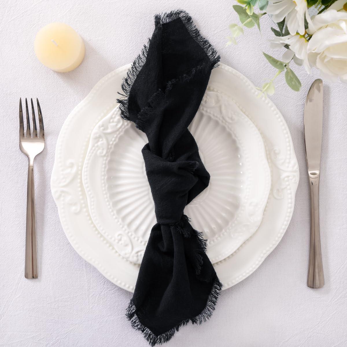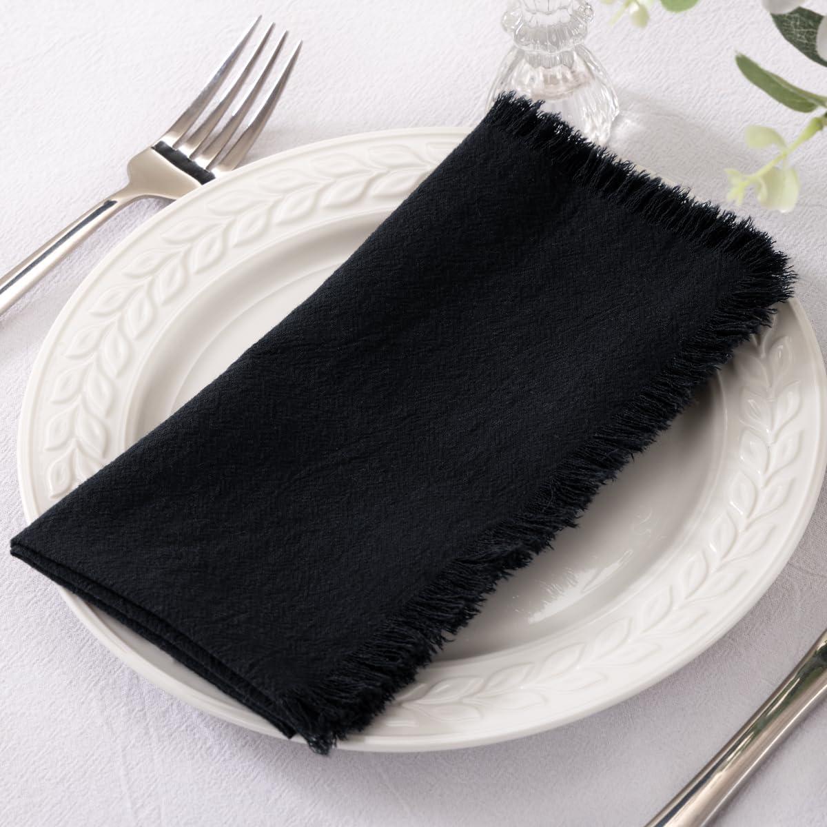 Socomi Linen Napkins Green Fall Thanksgiving Cloth Napkins Bulk Washable Cotton Napkins Set of 6 17"x17" for Wedding Party Bridal Baby Shower Birthday Table Decorations(Black)