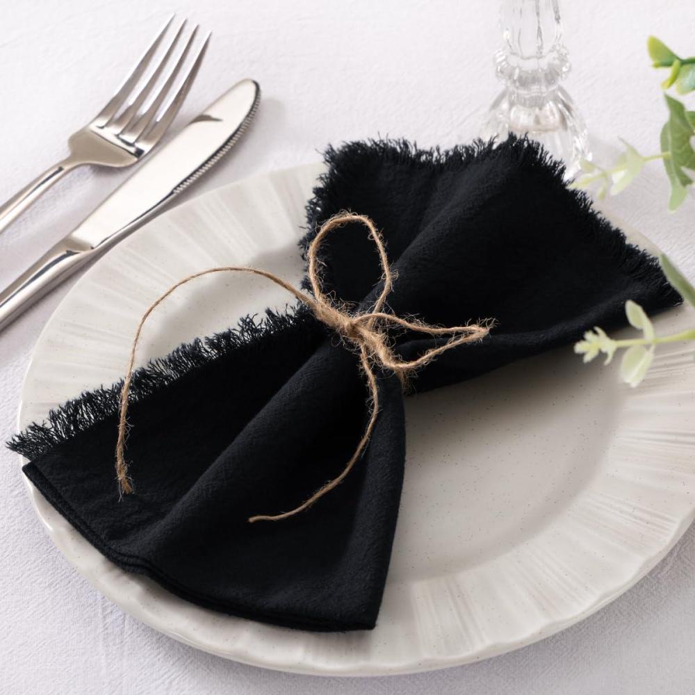 Package: Contains 6 pieces of cotton napkins with matching natural jute rope for decor.