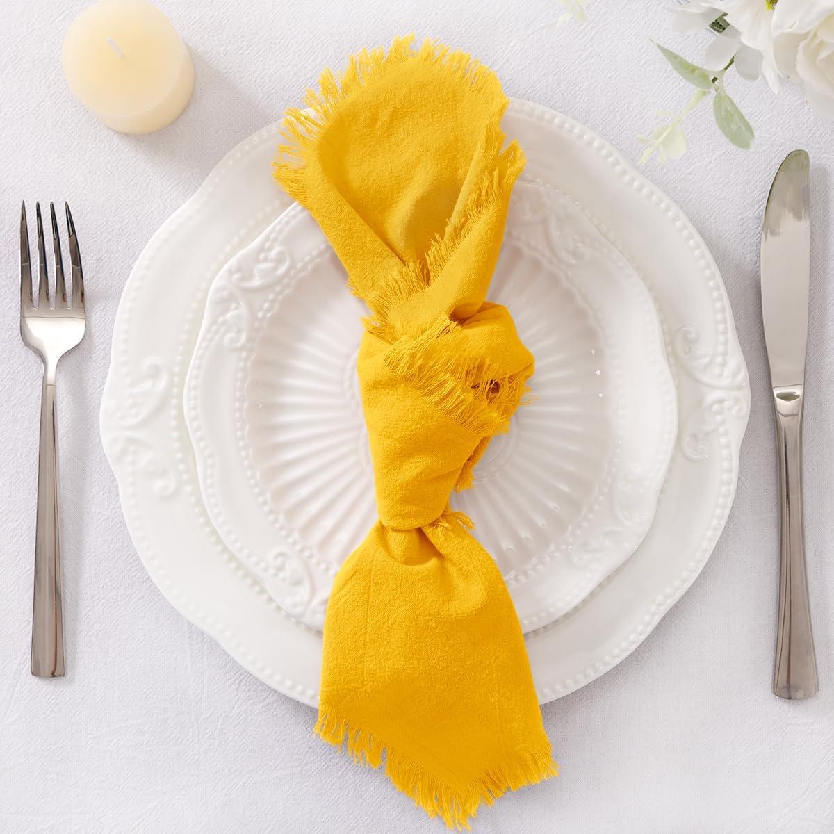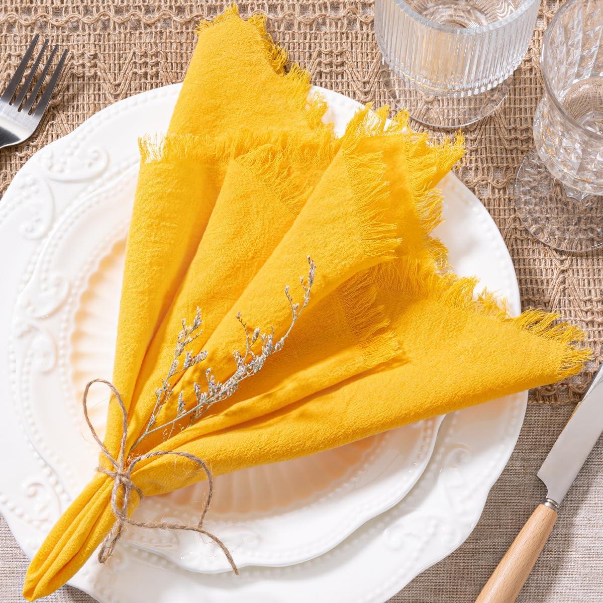 Package: Contains 6 pieces of cotton napkins with matching natural jute rope for decor.