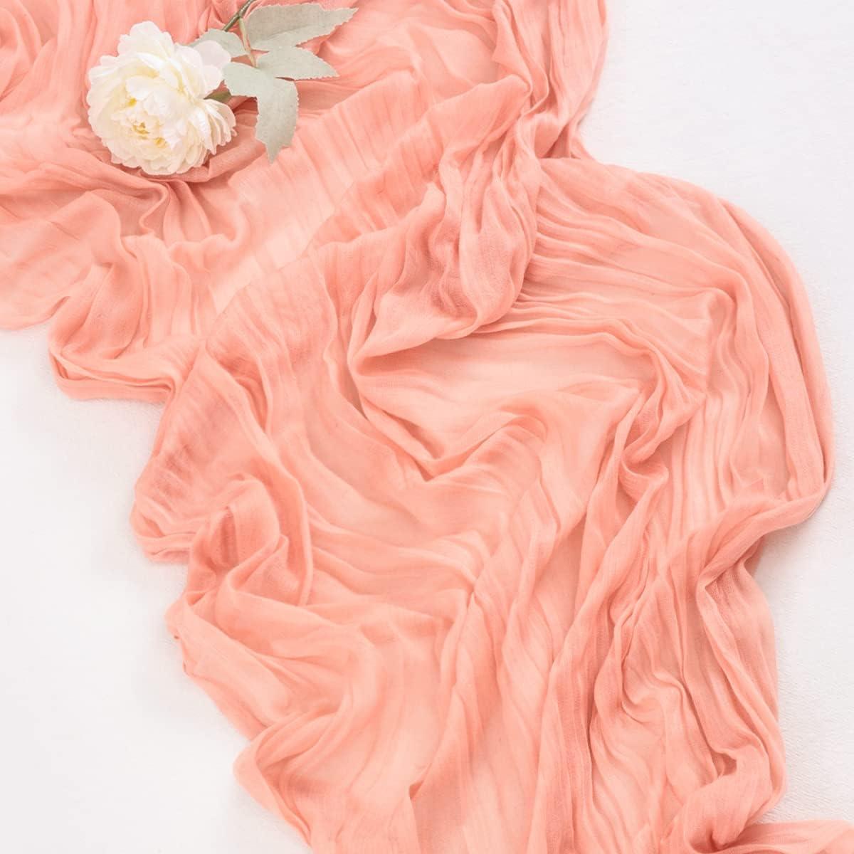 Socomi Nude Brown Cheesecloth Table Runner Fall Thanksgiving Boho Rustic Gauze 120 inch 10FT Cheese Cloth Runner for Wedding Party Baby Shower Birthday Home Decor Holiday Decorations(Coral)