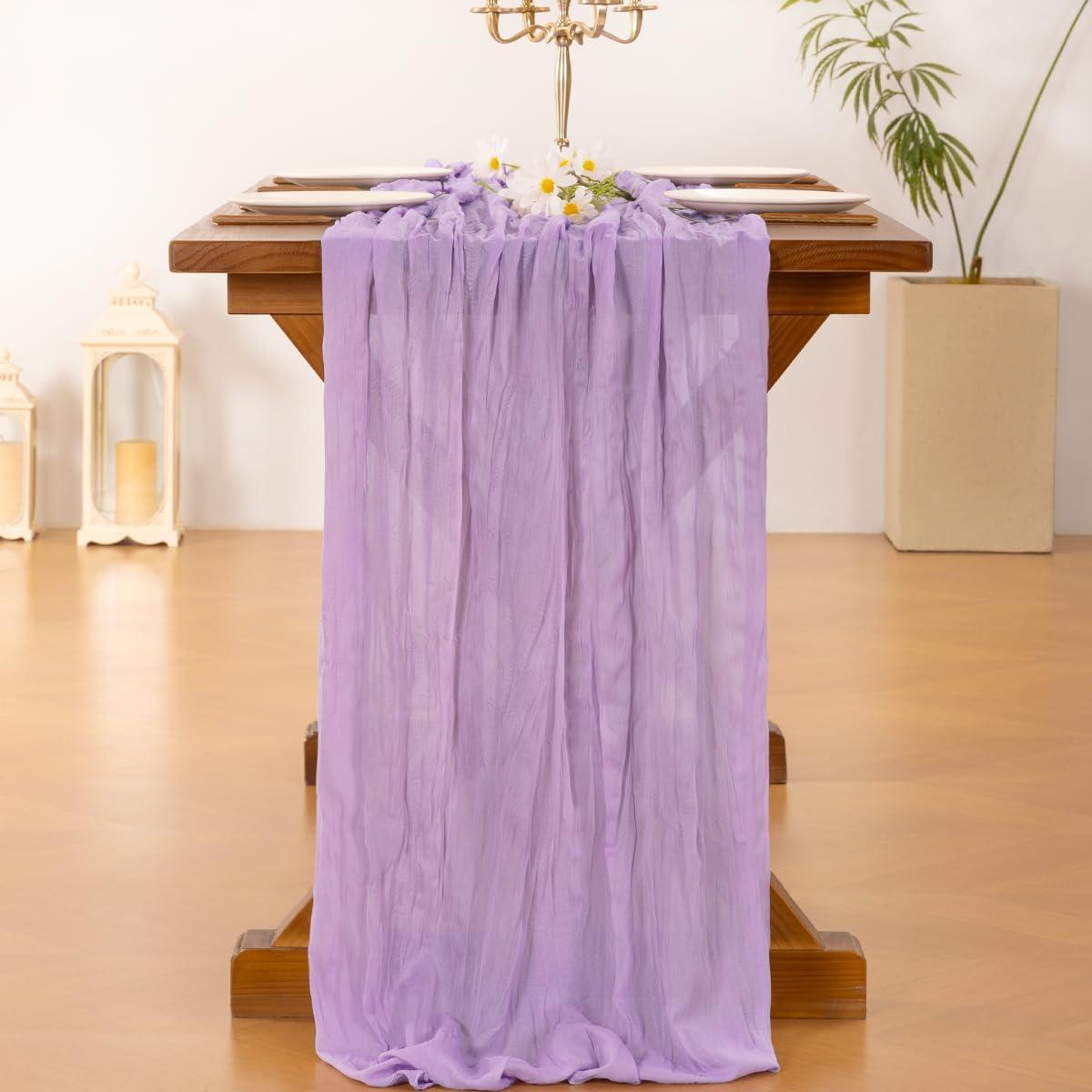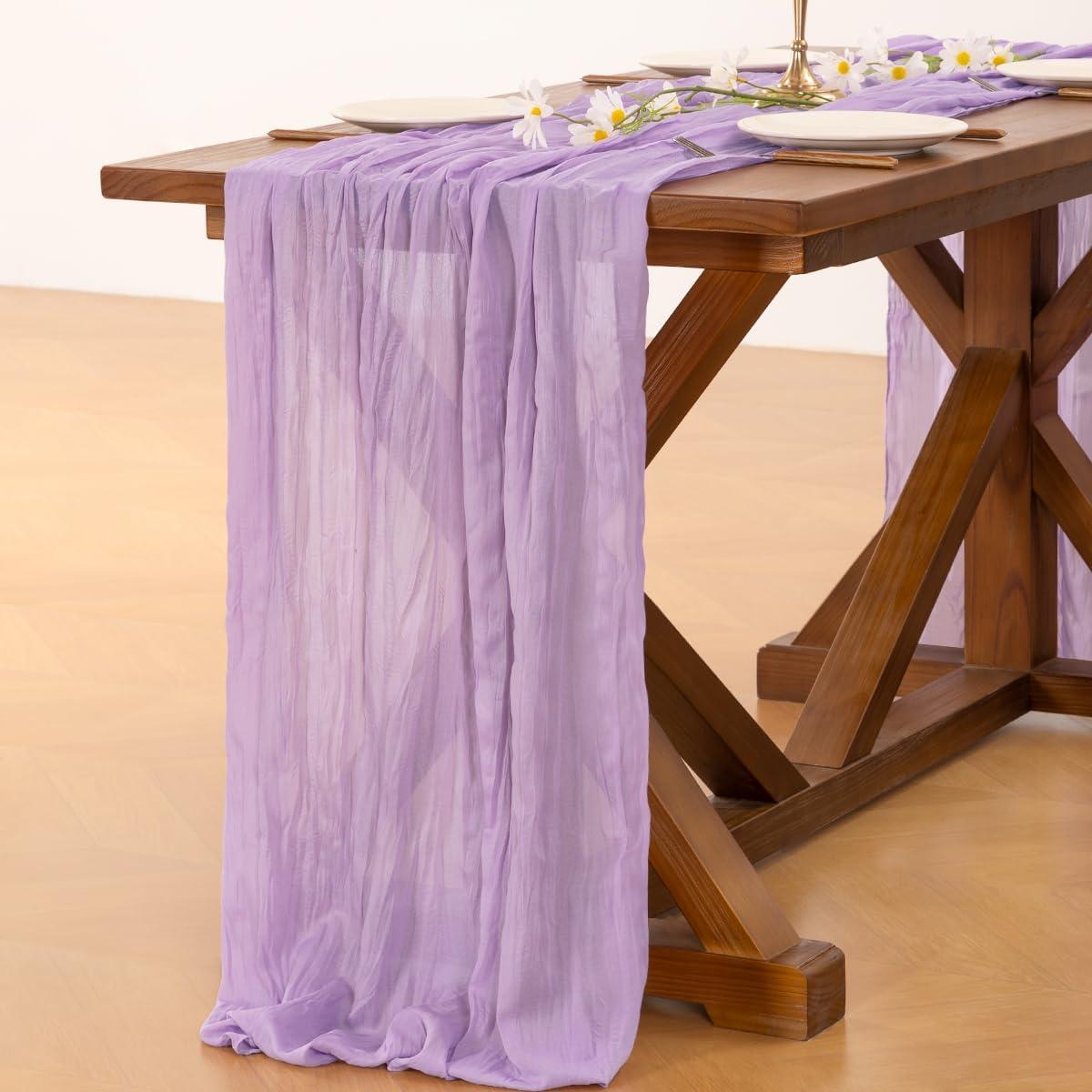 Socomi Nude Brown Cheesecloth Table Runner Fall Thanksgiving Boho Rustic Gauze 120 inch 10FT Cheese Cloth Runner for Wedding Party Baby Shower Birthday Home Decor Holiday Decorations(Lilac)