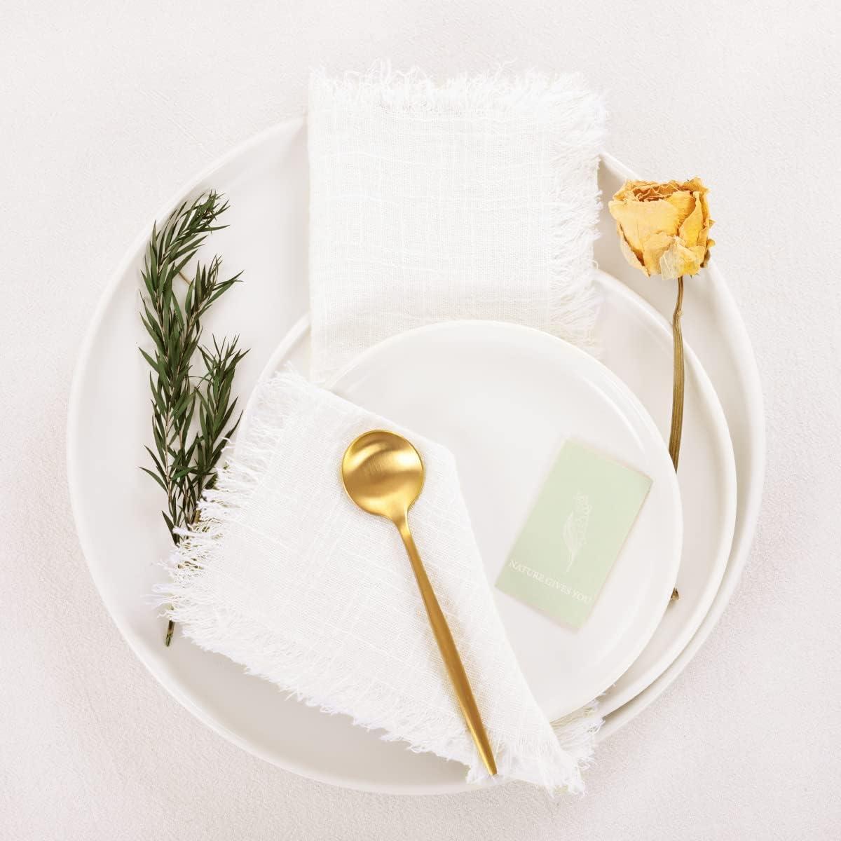 Socomi Set of 12 Linen Napkins Caramel Easter Spring Cloth Napkins Washable Fringe 17″x17″ for Wedding Party Bridal Baby Shower Birthday Table Decorations(Cream)
