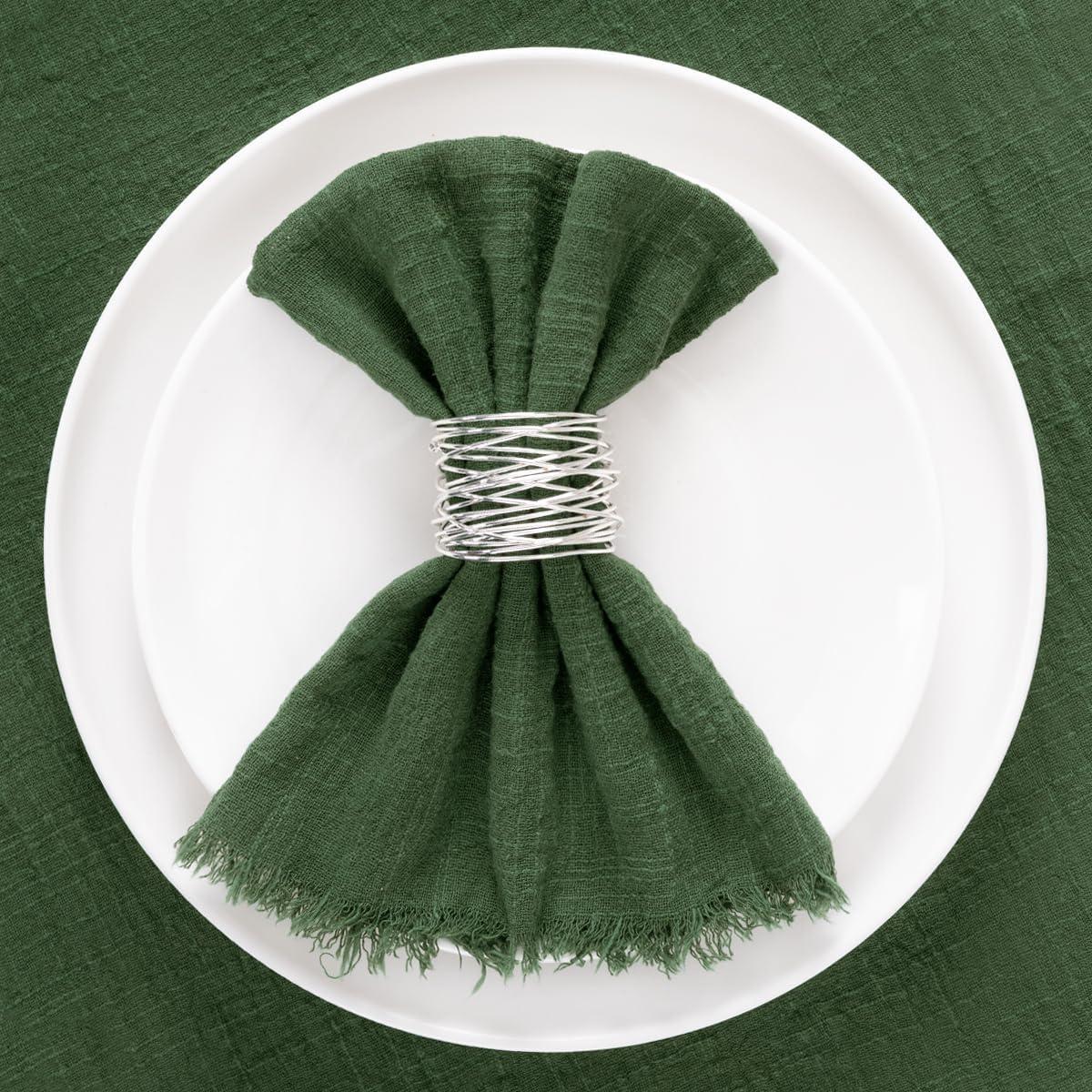 Socomi Set of 12 Linen Napkins Caramel Easter Spring Cloth Napkins Washable Fringe 17″x17″ for Wedding Party Bridal Baby Shower Birthday Table Decorations(Olive Green)