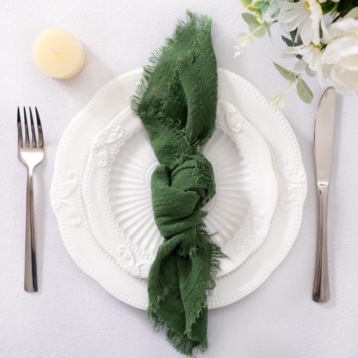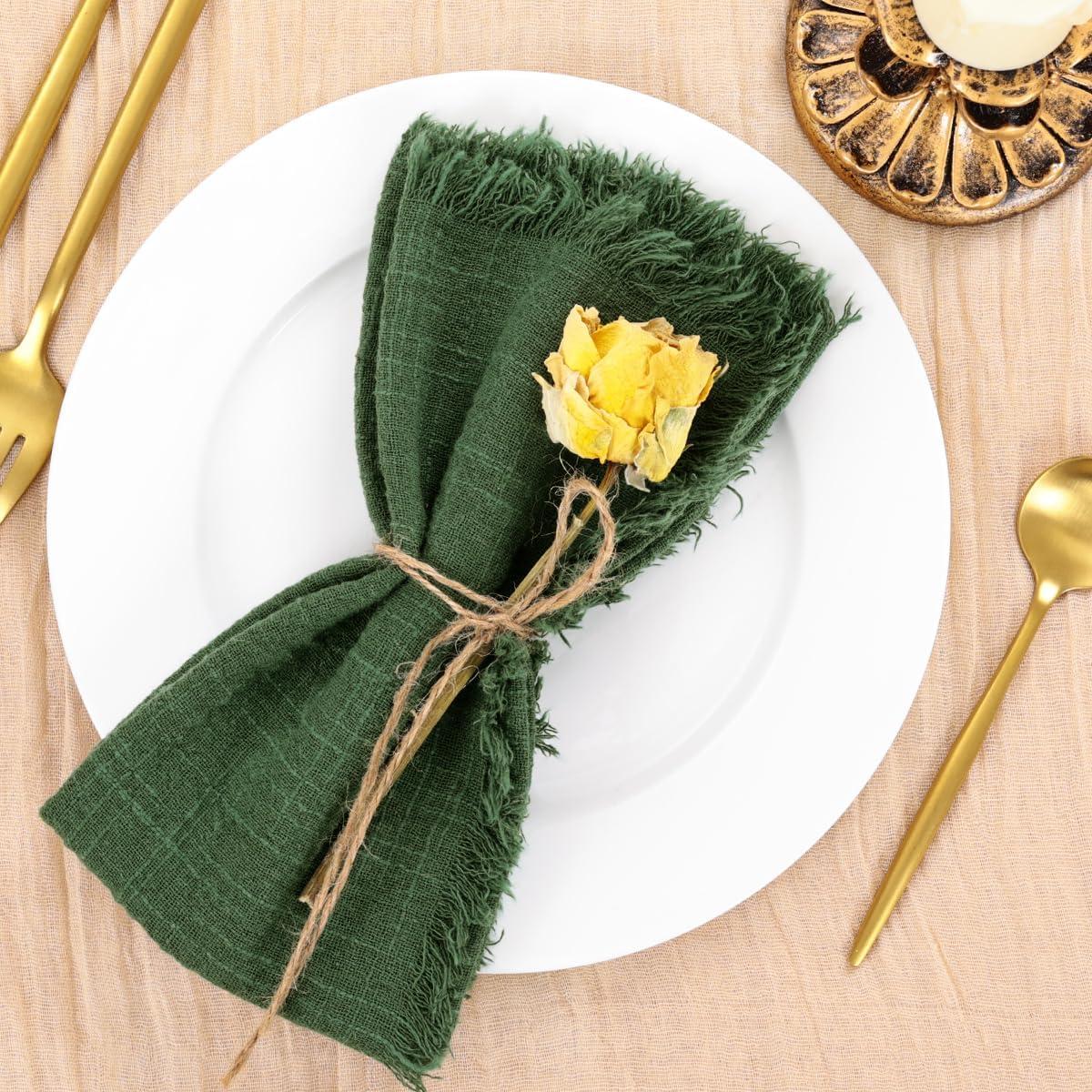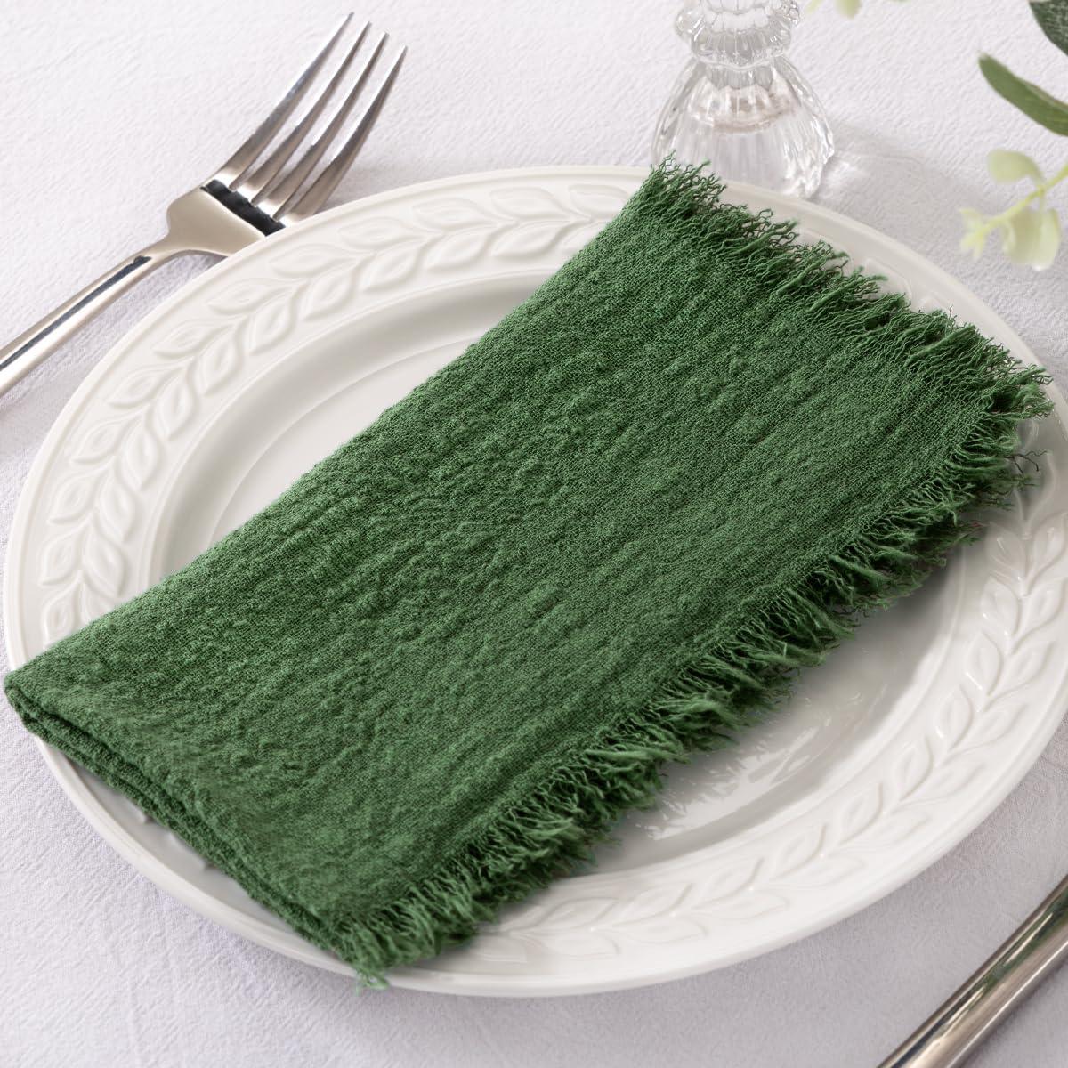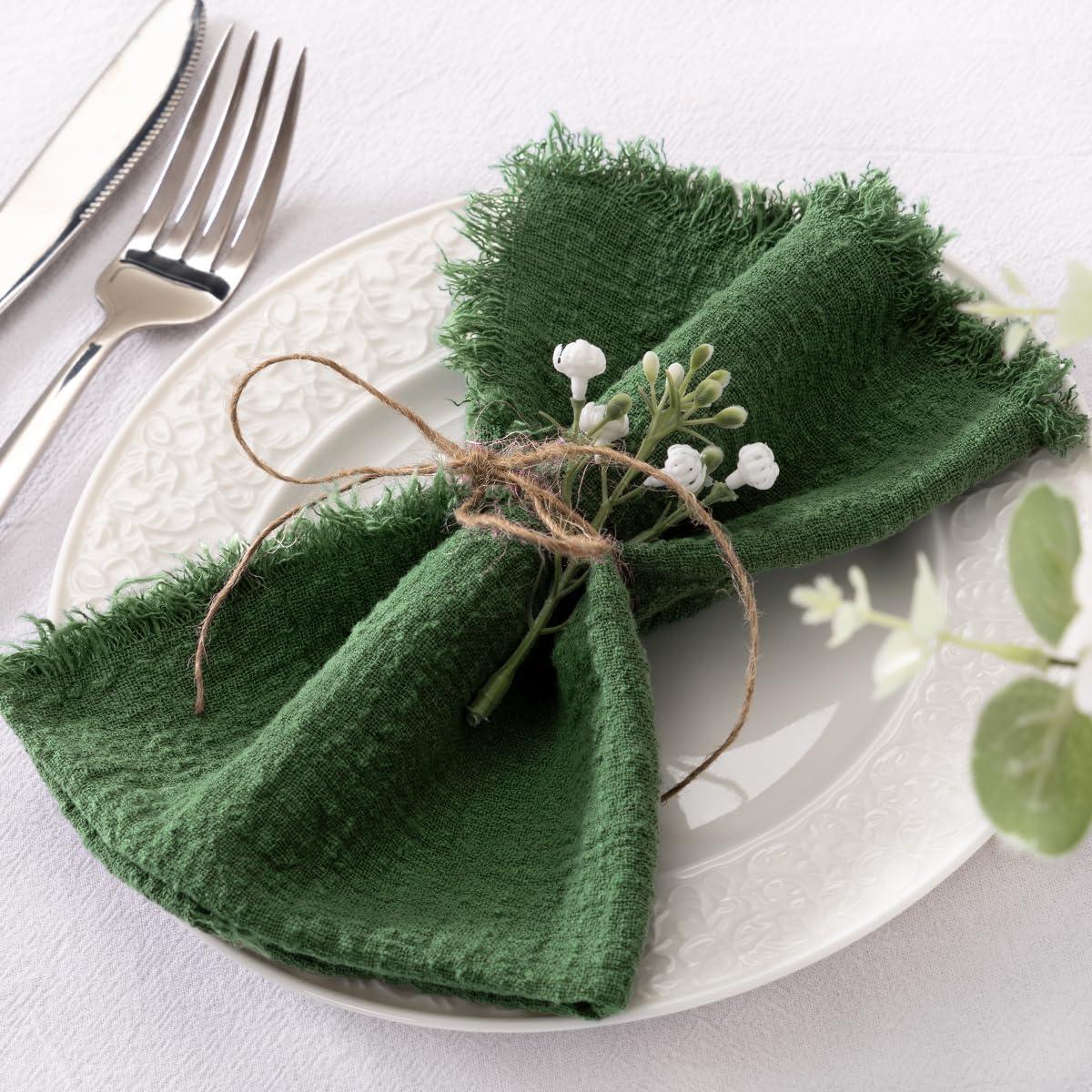 Socomi Set of 12 Linen Napkins Caramel Easter Spring Cloth Napkins Washable Fringe 17"x17" for Wedding Party Bridal Baby Shower Birthday Table Decorations(Olive Green)
