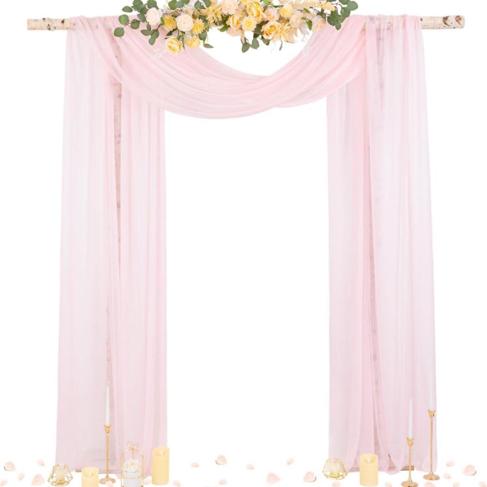 Socomi White Sheer Wedding Arch Draping Fabric 29″ x 20Ft 1 Panel Outdoor Curtain Drapes Extra Long for Bridal Baby Shower Ceremony Birthday Party Decor(Blush Pink)