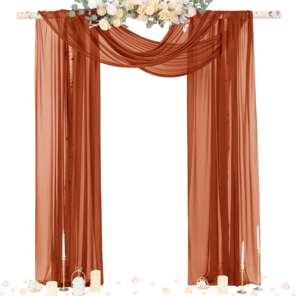 Socomi White Sheer Wedding Arch Draping Fabric 29" x 20Ft 1 Panel Outdoor Curtain Drapes Extra Long for Bridal Baby Shower Ceremony Birthday Party Decor(Terracotta)